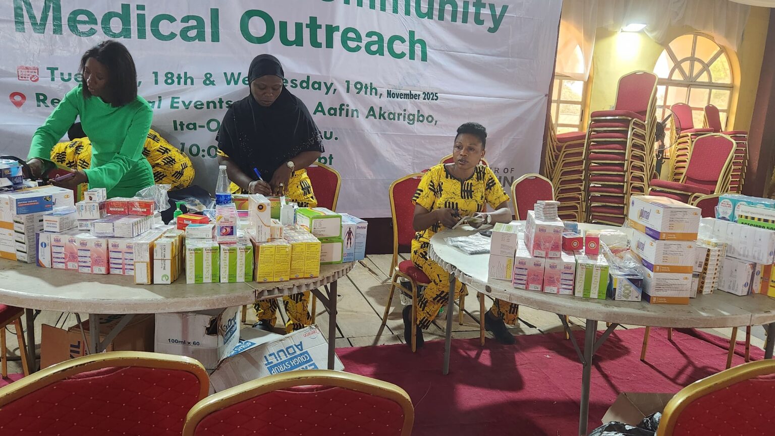 The outreach took place on Tuesday 18th and Wednesday 19th November 2025 at the Remo Royal Event Center, Aafin Akarigbo, Ita-Oba, Sagamu. Activities commenced daily by 9:00 a.m., with hundreds of residents turning out to access a wide range of free medical services.
